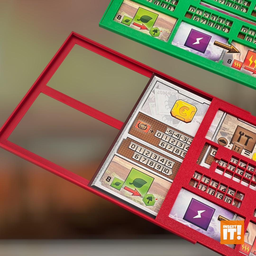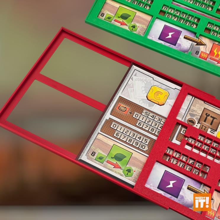 Minden társasjáték kiegészítőnk a 3D nyomtatásban igencsak bevált, PETG nevű anyagból készül. A PETG rendkívül erős és ütésálló, miközben kiváló hő- és vegyi ellenállással bír. Rugalmas jellege és alacsony zsugorodása miatt ideális funkcionális és tartós alkatrészekhez, mint amilyenek a társasjáték kiegészítők. A PETG ellenáll az oldószereknek, olajoknak és más vegyszereknek (míg pl. a PLA hajlamos lebomlani bizonyos anyagokkal való érintkezés során). A PETG-vel nyomtatott tárgyak stabilabbak maradnak párás környezetben. A PET (polietilén-tereftalát) ismerős lehet bárkinek, gyakran használt műanyag, például üdítős palackok anyagaként, de 3D nyomtatásra kevésbé alkalmas. A PETG (polietilén-tereftalát-glikol) tartalmaz még glikolt, ami stabilizálja a PET-et, ami csökkenti az anyag ridegségét. Ennek eredményeként a PETG rugalmasabb, és kevésbé hajlamos a repedezésre vagy törésre, ami ideálisabbá teszi 3D nyomtatáshoz, mint a sima PET-et. Energiatakarékosabban lehet nyomtatni is vele, a PETG nyomtatásához ugyanis alacsonyabb hőmérséklet szükséges.