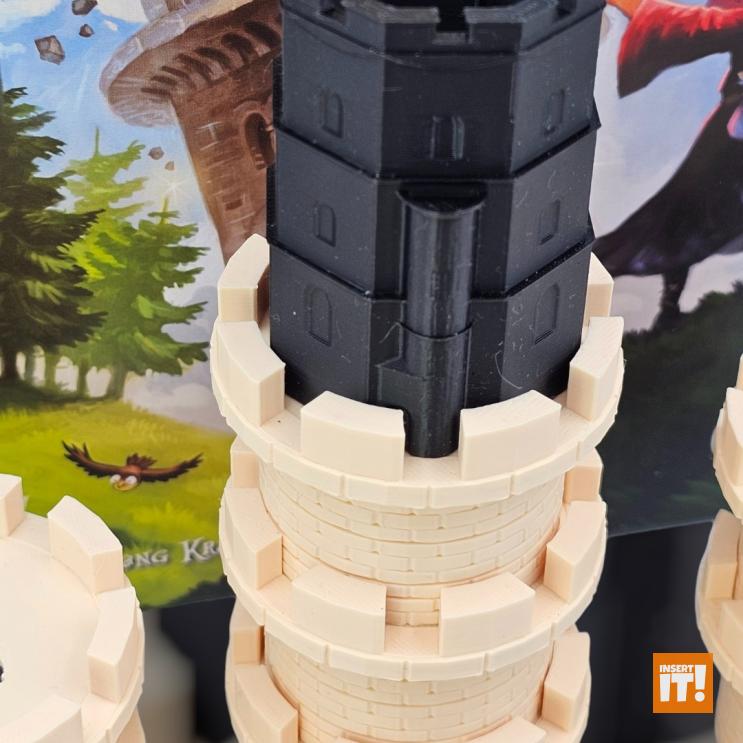The cardboard walls of the original towers fit into the bottom of the box, while the tops of the towers fit under the printed towers. The unpacking video shows these.