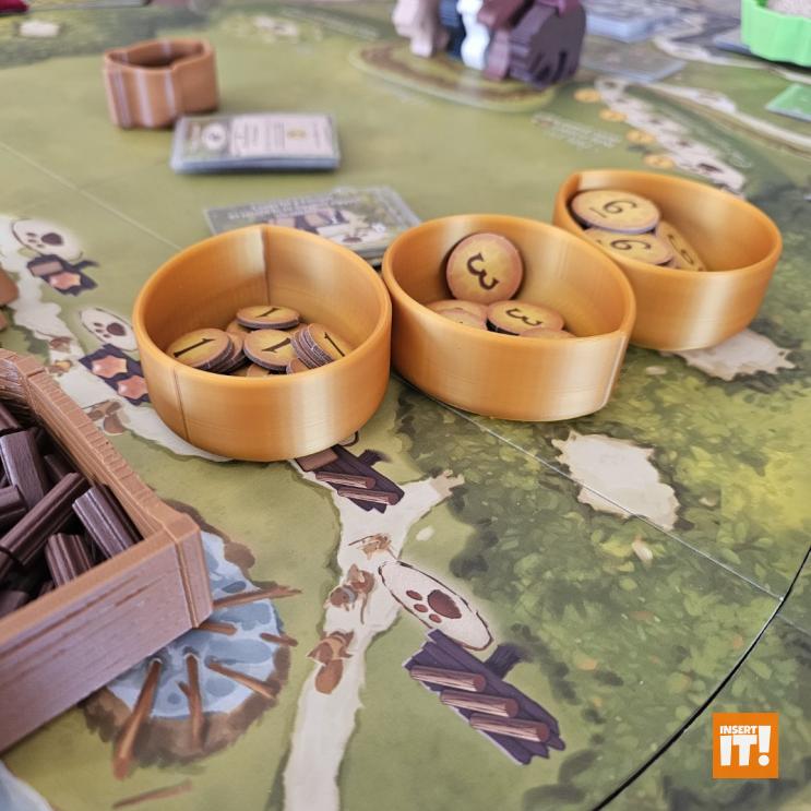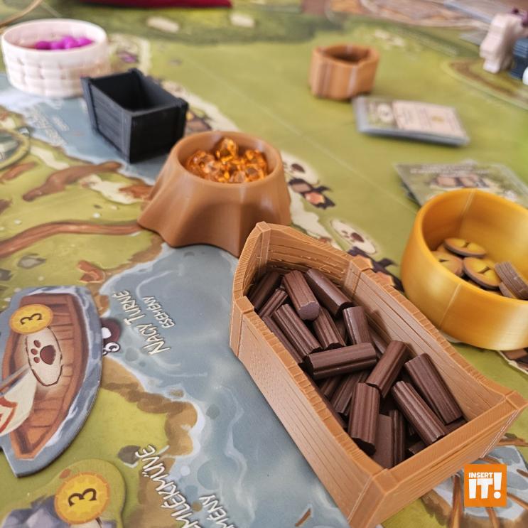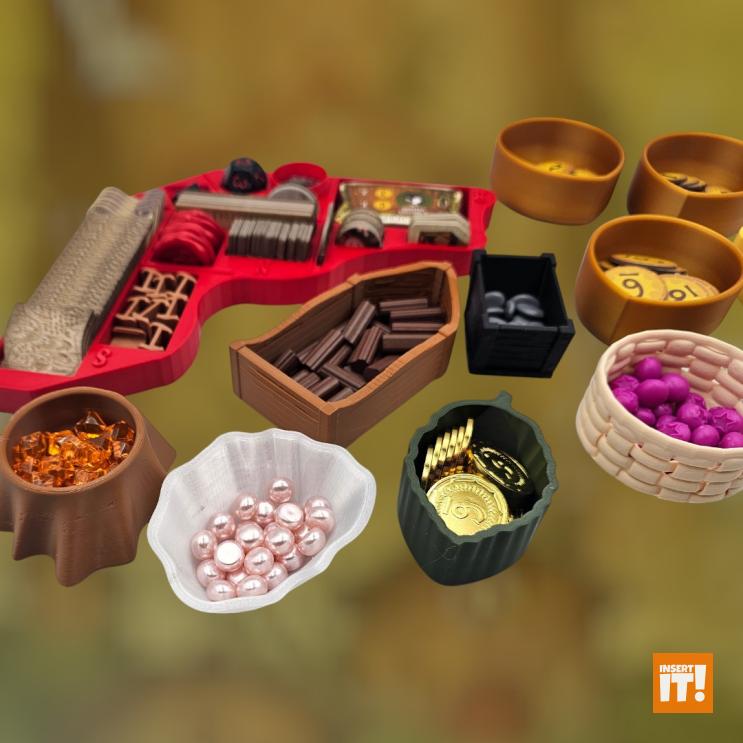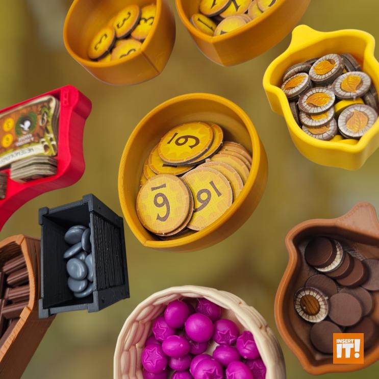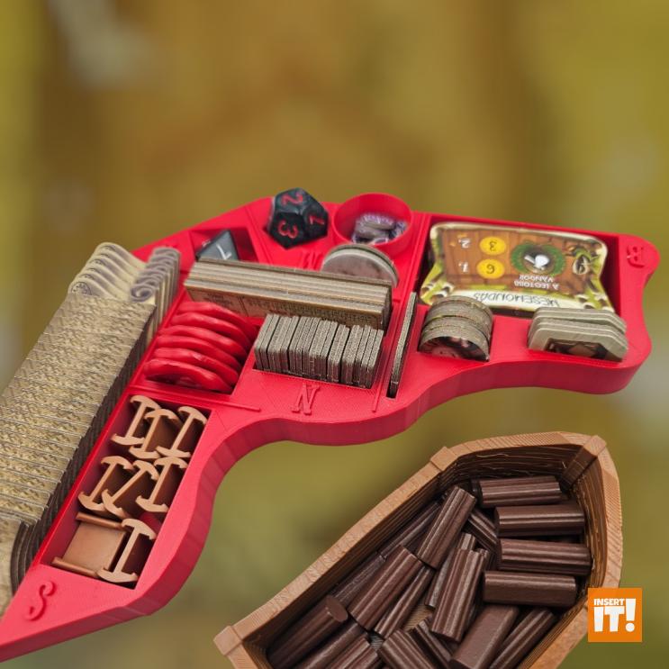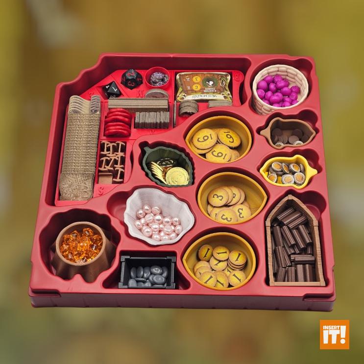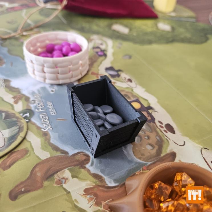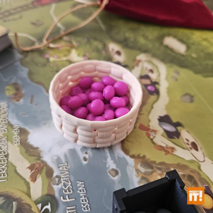 Minden társasjáték kiegészítőnk a 3D nyomtatásban igencsak bevált, PETG nevű anyagból készül. A PETG rendkívül erős és ütésálló, miközben kiváló hő- és vegyi ellenállással bír. Rugalmas jellege és alacsony zsugorodása miatt ideális funkcionális és tartós alkatrészekhez, mint amilyenek a társasjáték kiegészítők. A PETG ellenáll az oldószereknek, olajoknak és más vegyszereknek (míg pl. a PLA hajlamos lebomlani bizonyos anyagokkal való érintkezés során). A PETG-vel nyomtatott tárgyak stabilabbak maradnak párás környezetben. A PET (polietilén-tereftalát) ismerős lehet bárkinek, gyakran használt műanyag, például üdítős palackok anyagaként, de 3D nyomtatásra kevésbé alkalmas. A PETG (polietilén-tereftalát-glikol) tartalmaz még glikolt, ami stabilizálja a PET-et, ami csökkenti az anyag ridegségét. Ennek eredményeként a PETG rugalmasabb, és kevésbé hajlamos a repedezésre vagy törésre, ami ideálisabbá teszi 3D nyomtatáshoz, mint a sima PET-et. Energiatakarékosabban lehet nyomtatni is vele, a PETG nyomtatásához ugyanis alacsonyabb hőmérséklet szükséges.