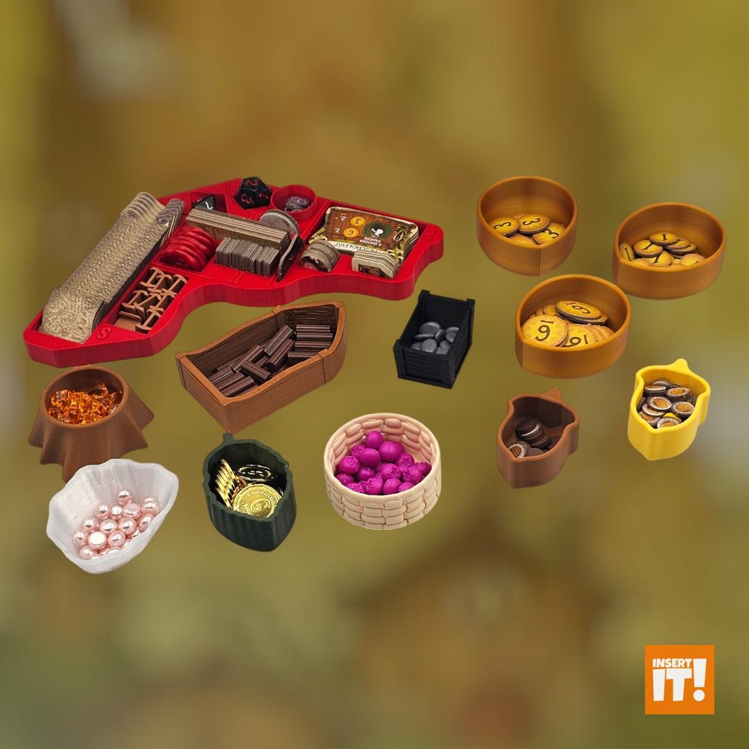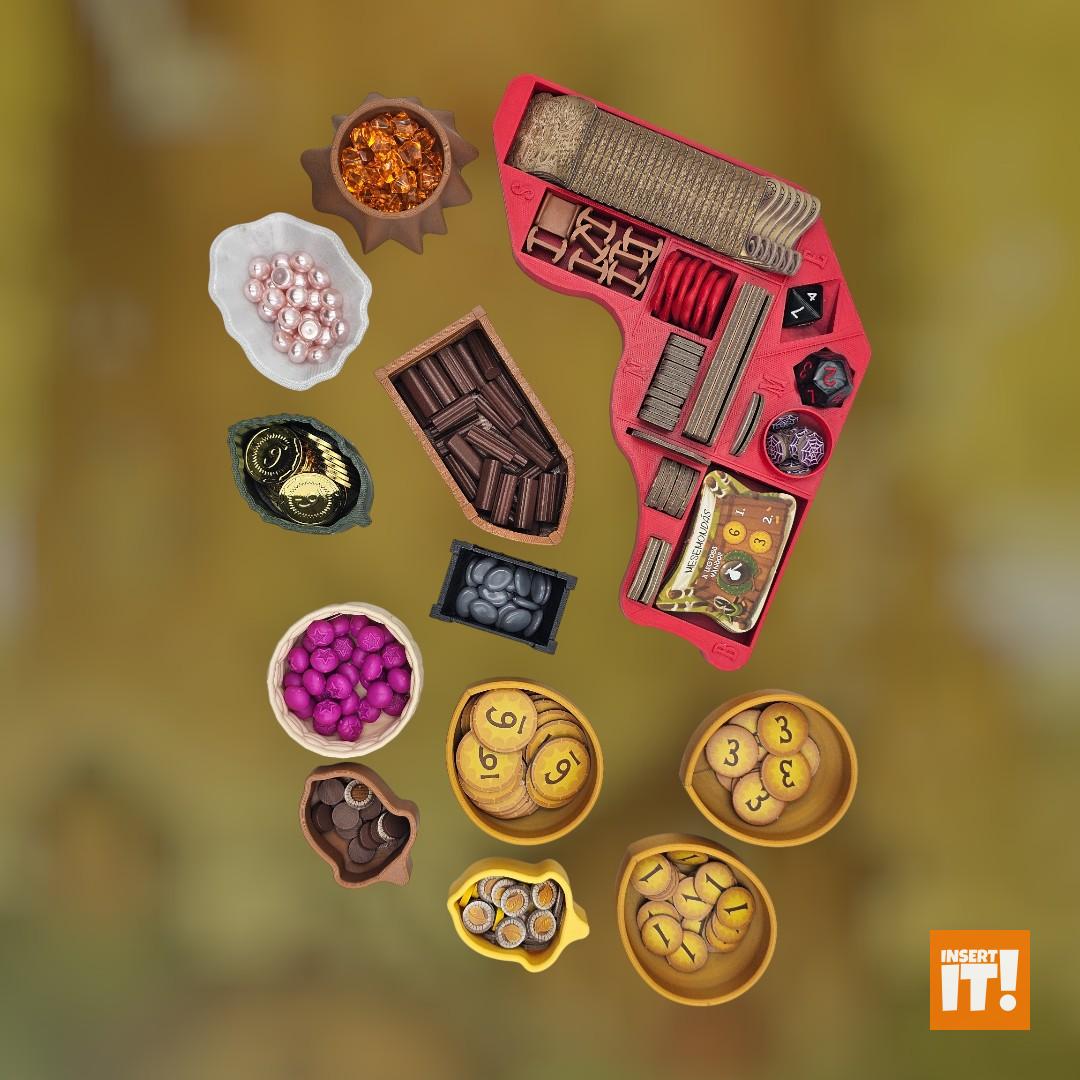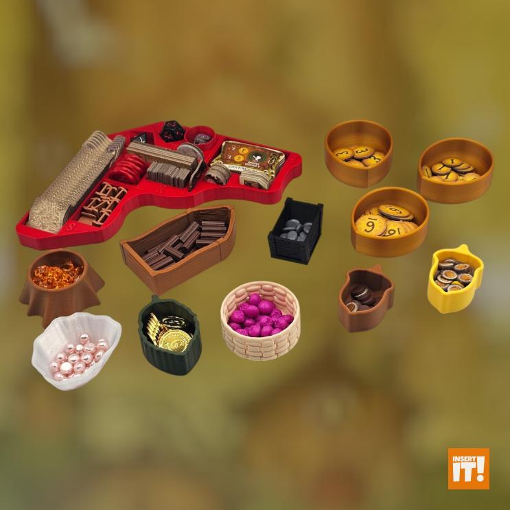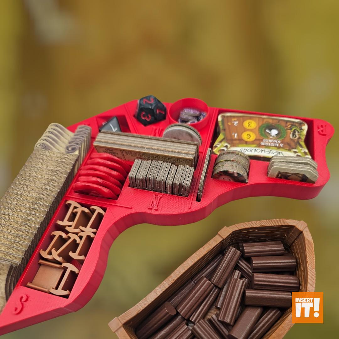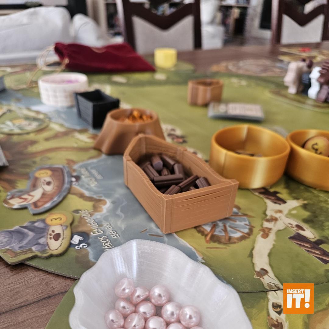 Minden társasjáték kiegészítőnk a 3D nyomtatásban igencsak bevált, PETG nevű anyagból készül. A PETG rendkívül erős és ütésálló, miközben kiváló hő- és vegyi ellenállással bír. Rugalmas jellege és alacsony zsugorodása miatt ideális funkcionális és tartós alkatrészekhez, mint amilyenek a társasjáték kiegészítők. A PETG ellenáll az oldószereknek, olajoknak és más vegyszereknek (míg pl. a PLA hajlamos lebomlani bizonyos anyagokkal való érintkezés során). A PETG-vel nyomtatott tárgyak stabilabbak maradnak párás környezetben. A PET (polietilén-tereftalát) ismerős lehet bárkinek, gyakran használt műanyag, például üdítős palackok anyagaként, de 3D nyomtatásra kevésbé alkalmas. A PETG (polietilén-tereftalát-glikol) tartalmaz még glikolt, ami stabilizálja a PET-et, ami csökkenti az anyag ridegségét. Ennek eredményeként a PETG rugalmasabb, és kevésbé hajlamos a repedezésre vagy törésre, ami ideálisabbá teszi 3D nyomtatáshoz, mint a sima PET-et. Energiatakarékosabban lehet nyomtatni is vele, a PETG nyomtatásához ugyanis alacsonyabb hőmérséklet szükséges.