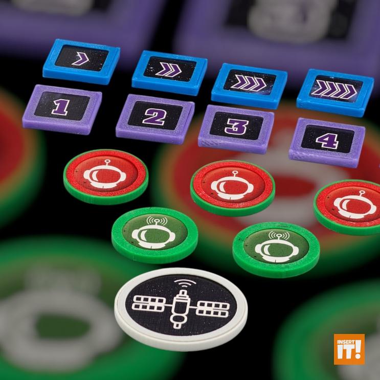 Minden társasjáték kiegészítőnk a 3D nyomtatásban igencsak bevált, PETG nevű anyagból készül. A PETG rendkívül erős és ütésálló, miközben kiváló hő- és vegyi ellenállással bír. Rugalmas jellege és alacsony zsugorodása miatt ideális funkcionális és tartós alkatrészekhez, mint amilyenek a társasjáték kiegészítők. A PETG ellenáll az oldószereknek, olajoknak és más vegyszereknek (míg pl. a PLA hajlamos lebomlani bizonyos anyagokkal való érintkezés során). A PETG-vel nyomtatott tárgyak stabilabbak maradnak párás környezetben. A PET (polietilén-tereftalát) ismerős lehet bárkinek, gyakran használt műanyag, például üdítős palackok anyagaként, de 3D nyomtatásra kevésbé alkalmas. A PETG (polietilén-tereftalát-glikol) tartalmaz még glikolt, ami stabilizálja a PET-et, ami csökkenti az anyag ridegségét. Ennek eredményeként a PETG rugalmasabb, és kevésbé hajlamos a repedezésre vagy törésre, ami ideálisabbá teszi 3D nyomtatáshoz, mint a sima PET-et. Energiatakarékosabban lehet nyomtatni is vele, a PETG nyomtatásához ugyanis alacsonyabb hőmérséklet szükséges.